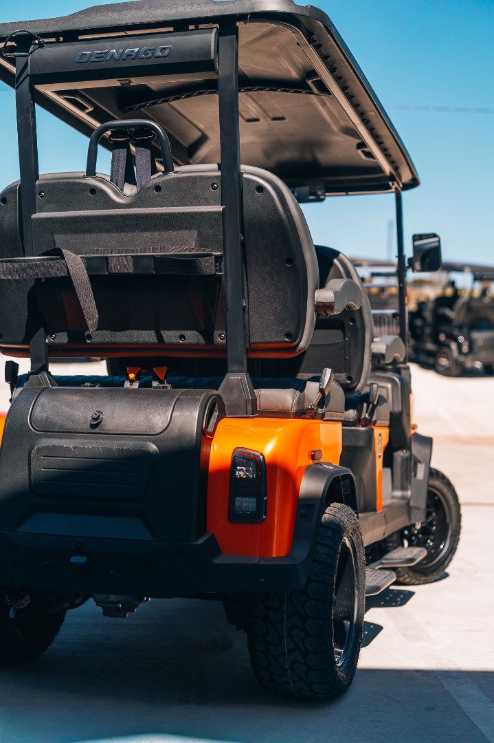 The Denago EV Rover XL is designed for comfort and efficiency, with advanced technology and safety features that make every journey enjoyable and secure. Its versatile design can accommodate four passengers with premium seating and includes essential conveniences like cup holders and glove boxes.